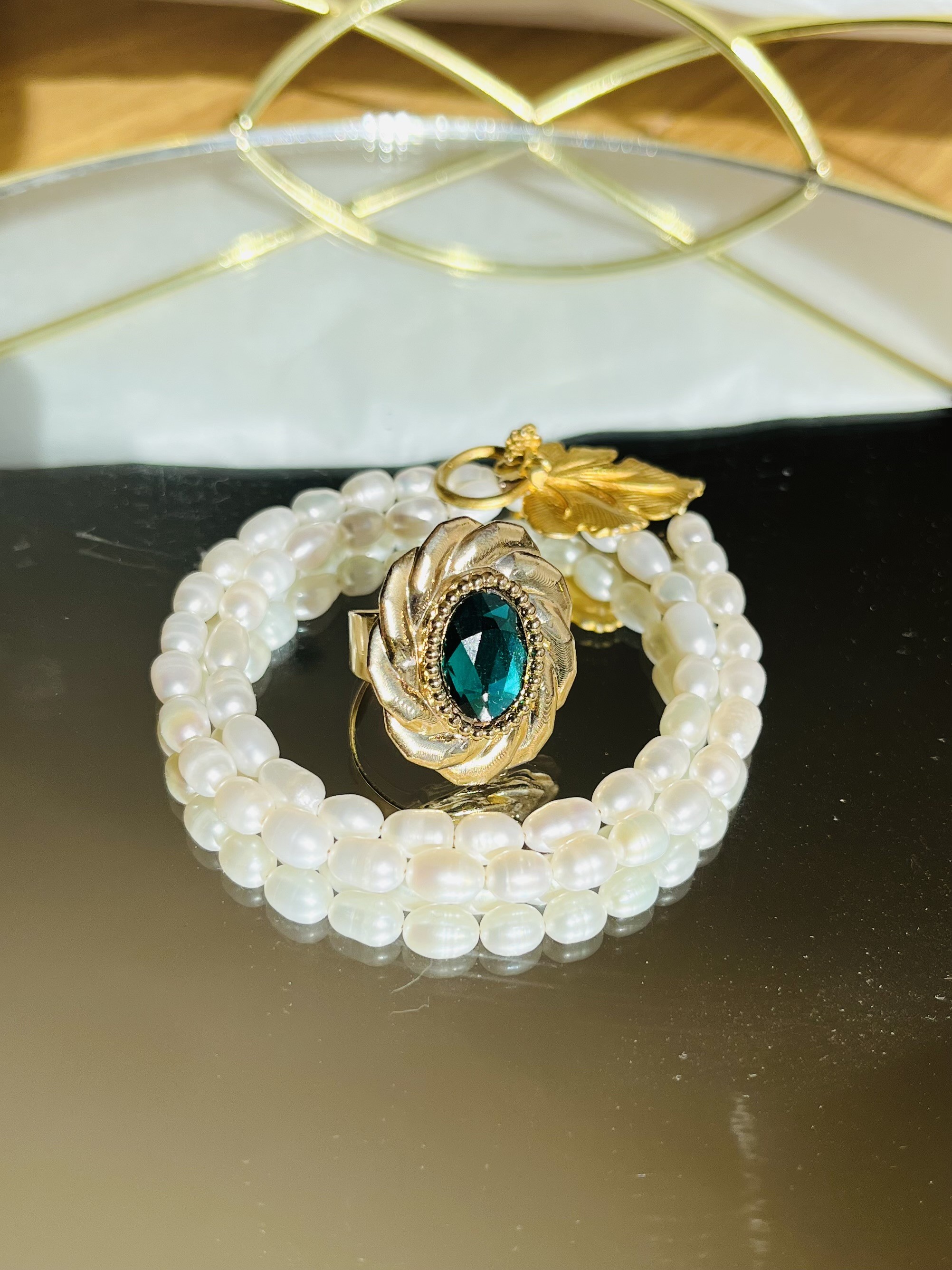 Notre bague finement sculptée est ornée d'une pierre en cristal facettée vert émeraude qui capte la lumière avec éclat.