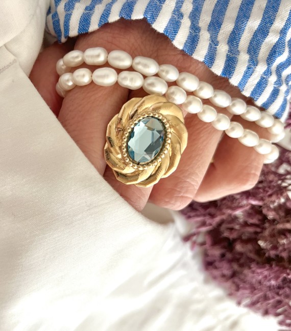 Notre bijou est également disponible orné d'une pierre facettée bleu lagon Bague originale femme au design festonnée | CAFEINE DESIGNERS BIJOUX