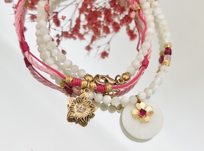 - Cordon Torsadé : Ce bijou est suspendu à un cordon torsadé en rose poudré et dark rose, ajoutant une touche de douceur et de sophistication.