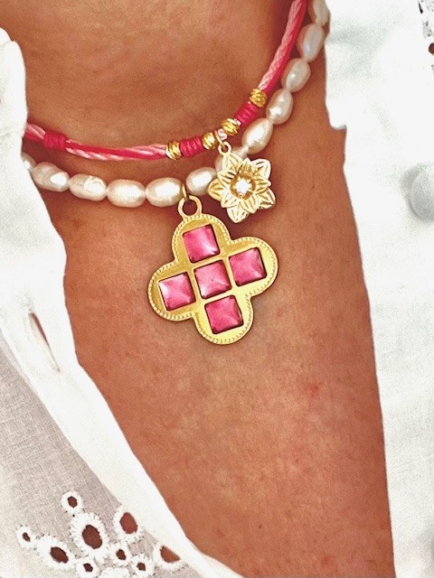 Bijou également disponible cabochon rose framboise Collier tendance | CAFEINE DESIGNERS BIJOUX
